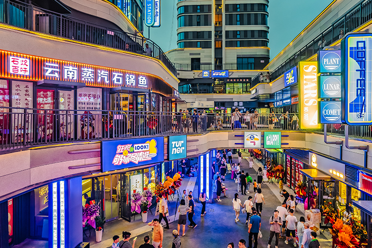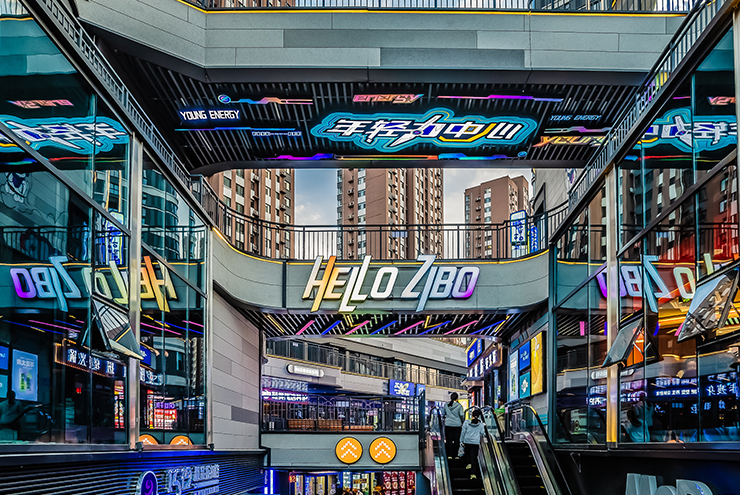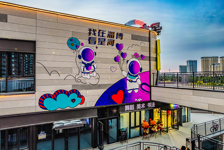 項(xiàng)目的設(shè)計(jì)理念源于科幻與潮酷概念的完美融合,旨在為城市打造一座年輕力地標(biāo),引領(lǐng)三四線(xiàn)城市的消費(fèi)新潮流。我們以星河艦為靈感,突出設(shè)計(jì)特色、豐富業(yè)態(tài)組合、創(chuàng)新商業(yè)空間,在與建筑的適配界面里營(yíng)造一艘穿越星際的宇宙飛船,賦予項(xiàng)目強(qiáng)烈的昭示性,成功吸引年輕消費(fèi)者的關(guān)注與喜愛(ài),成為淄博城市特色商業(yè)發(fā)展的重要力量。